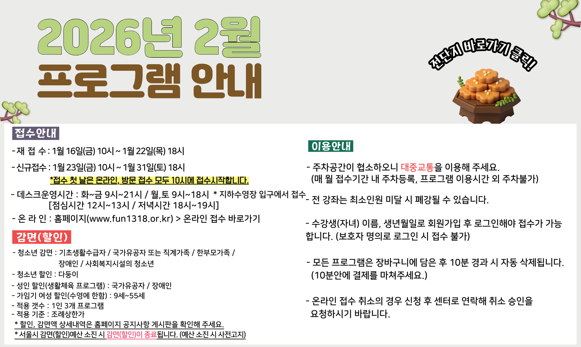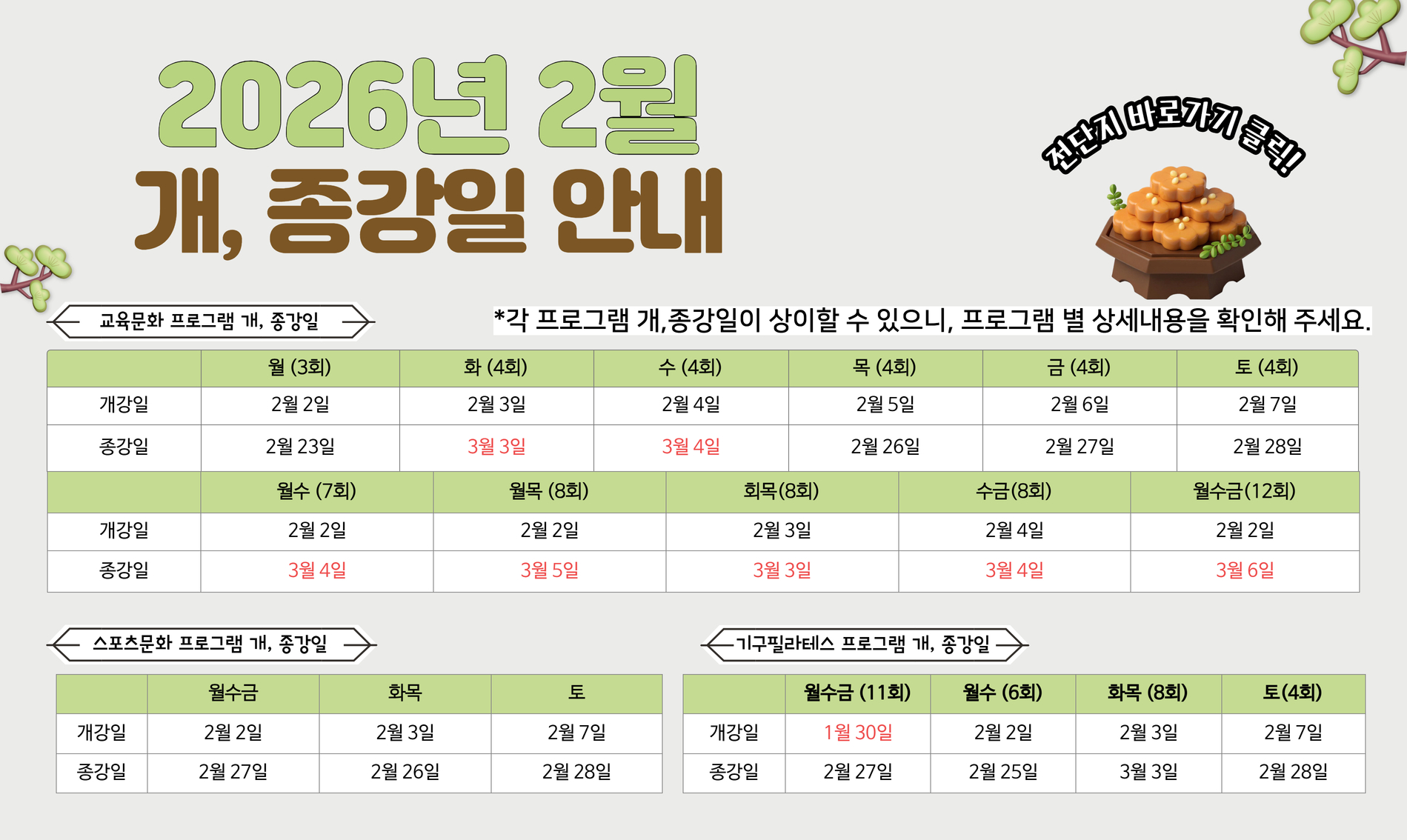 교육문화, 스포츠 강좌 회원접수