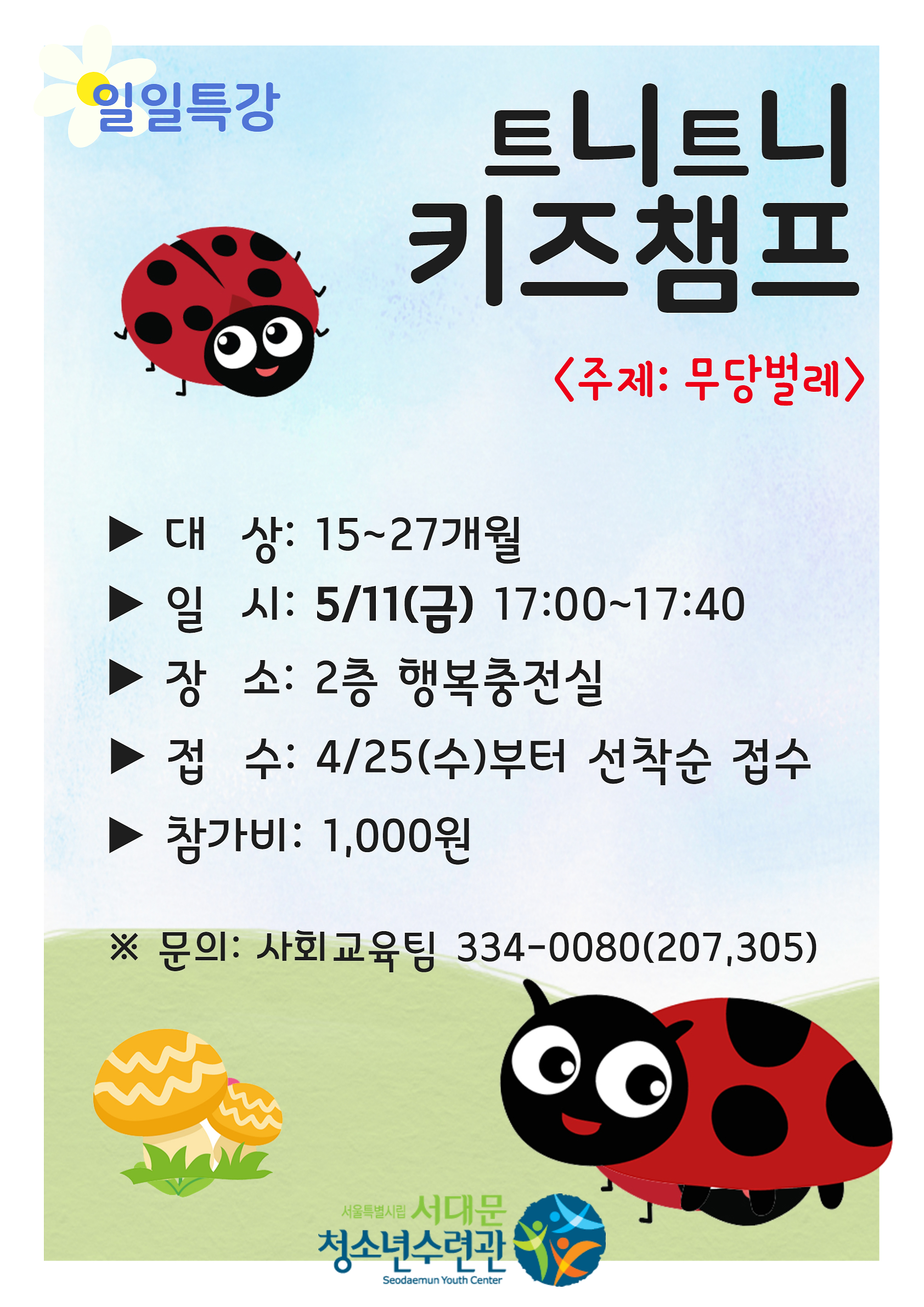 | 다음글 | 서대문청소년수련관 청소년활동팀(담당) 최종 합격자 공고 |