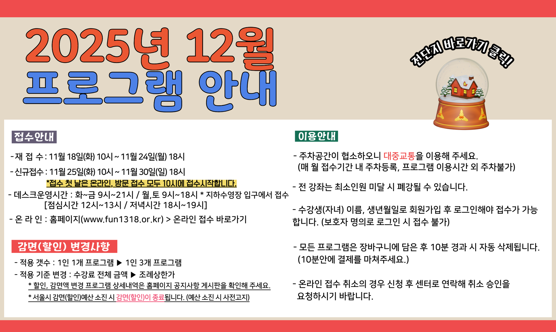 [안내] ★☆1월 프로그램(12월접수) 접수일자 변경안내☆★