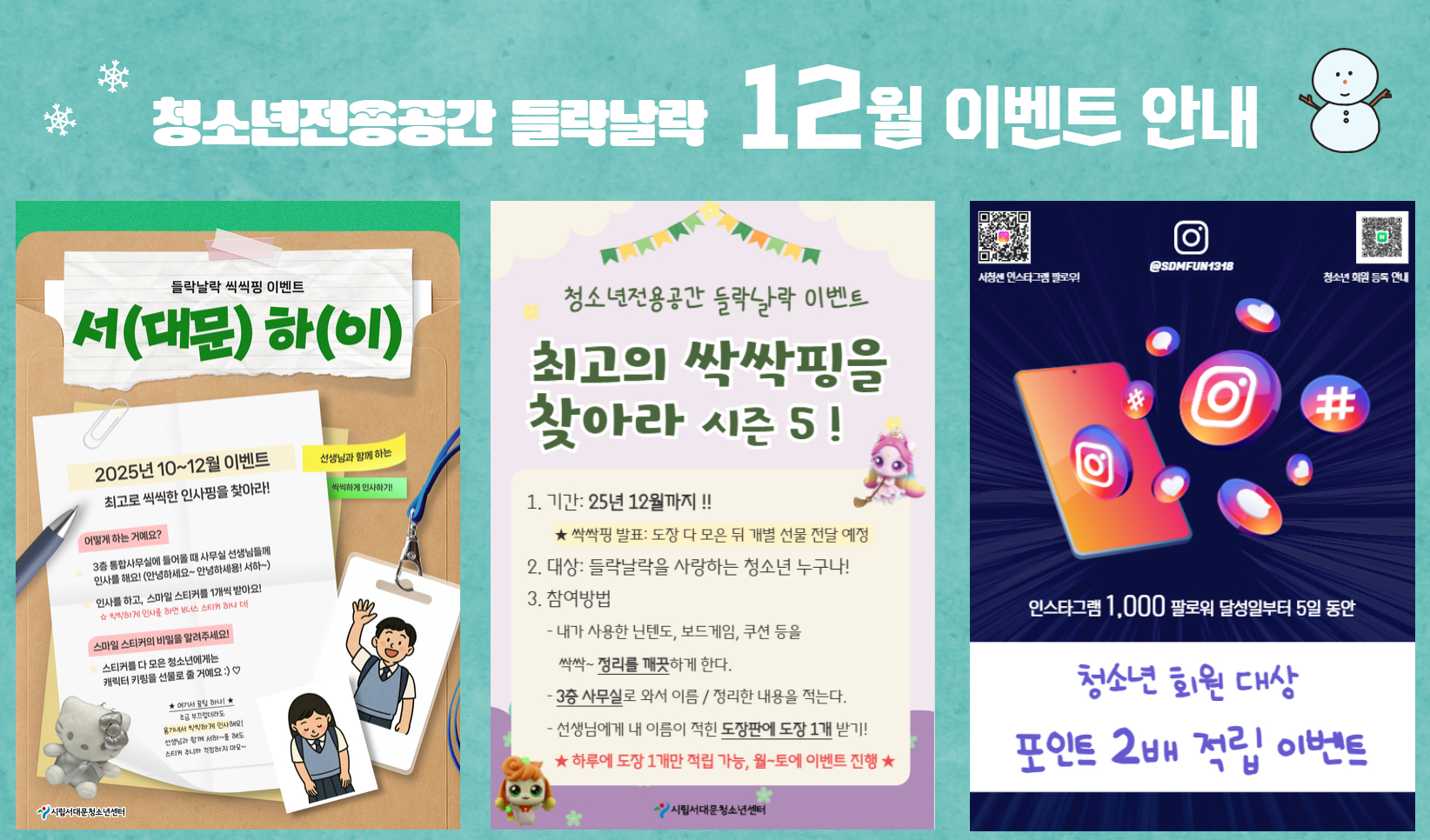 [안내] 12/20(토) 12시 청소년전용공간 BIG 이벤트 진행
