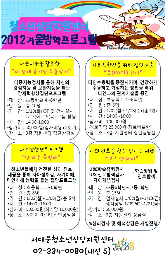 | 제목 | 청소년상담지원센터 겨울방학프로그램 | |||