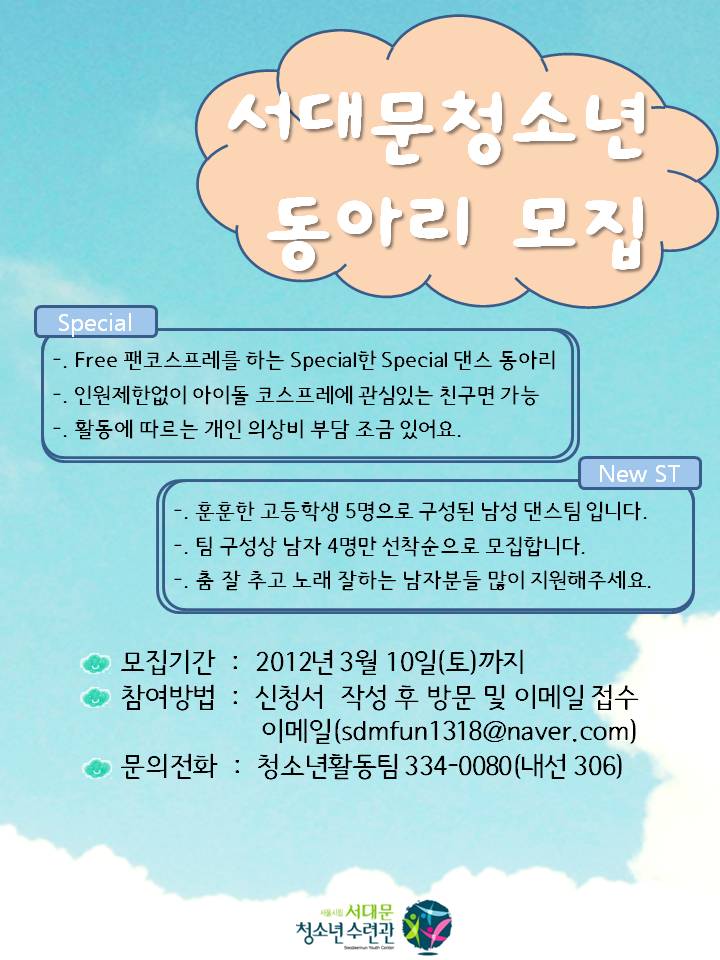 | 제목 | 청소년동아리 인원 모집 | |||