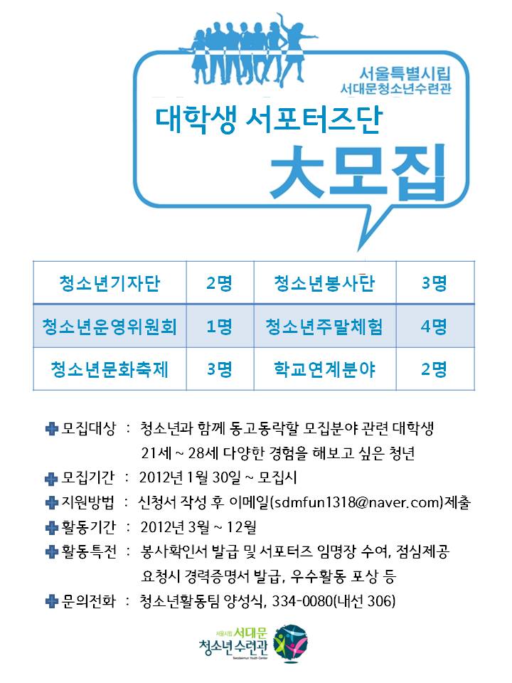 | 제목 | 2012년 대학생 서포터즈단 모집 | |||