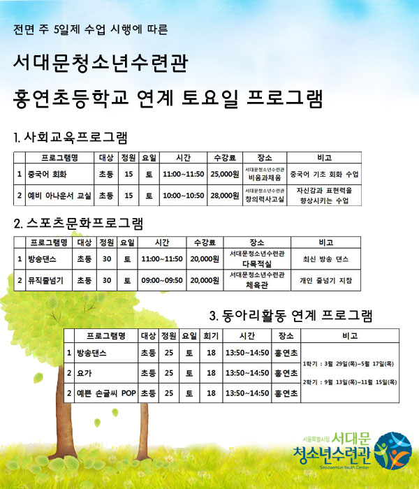 | 제목 | 서대문청소년수련관 홍연초등학교 연계 토요일 프로그램 | |||