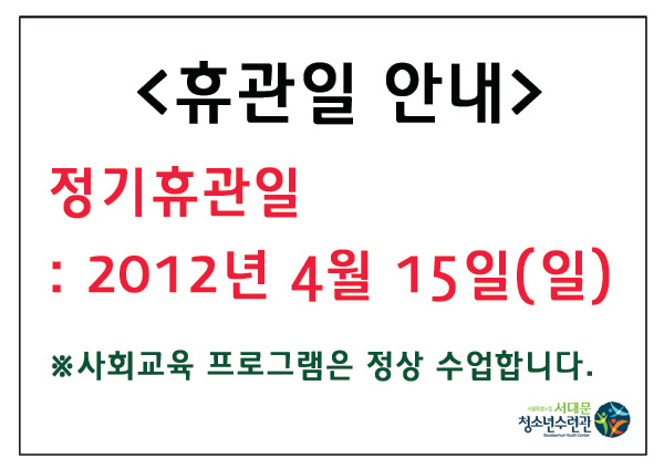 | 제목 | 2012년 4월 정기휴관일 안내 | |||
