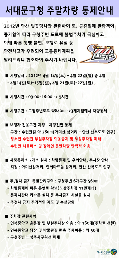| 제목 | 2012년 안산 벚꽃행사관련 차량 교통통제계획 안내 | |||
