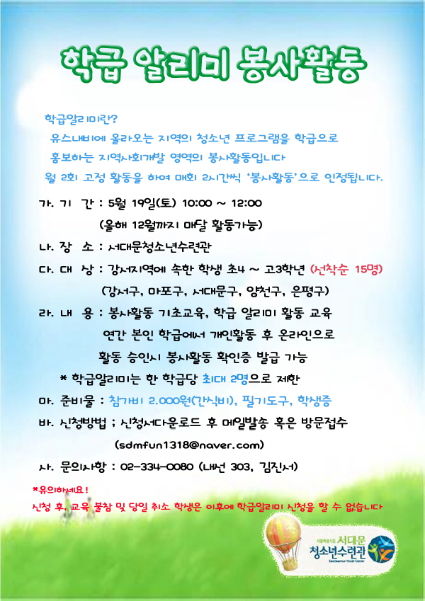 | 제목 | 5월 학급알리미 자원봉사 | |||
