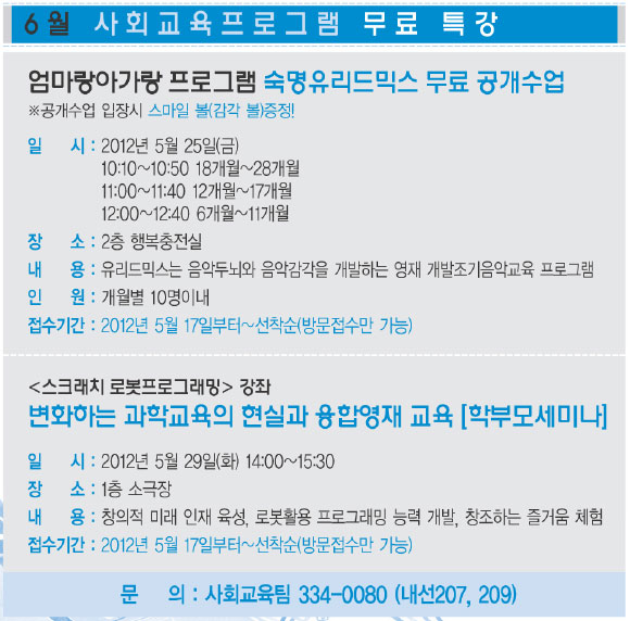 | 제목 | 6월 사회교육프로그램 무료특강 | |||