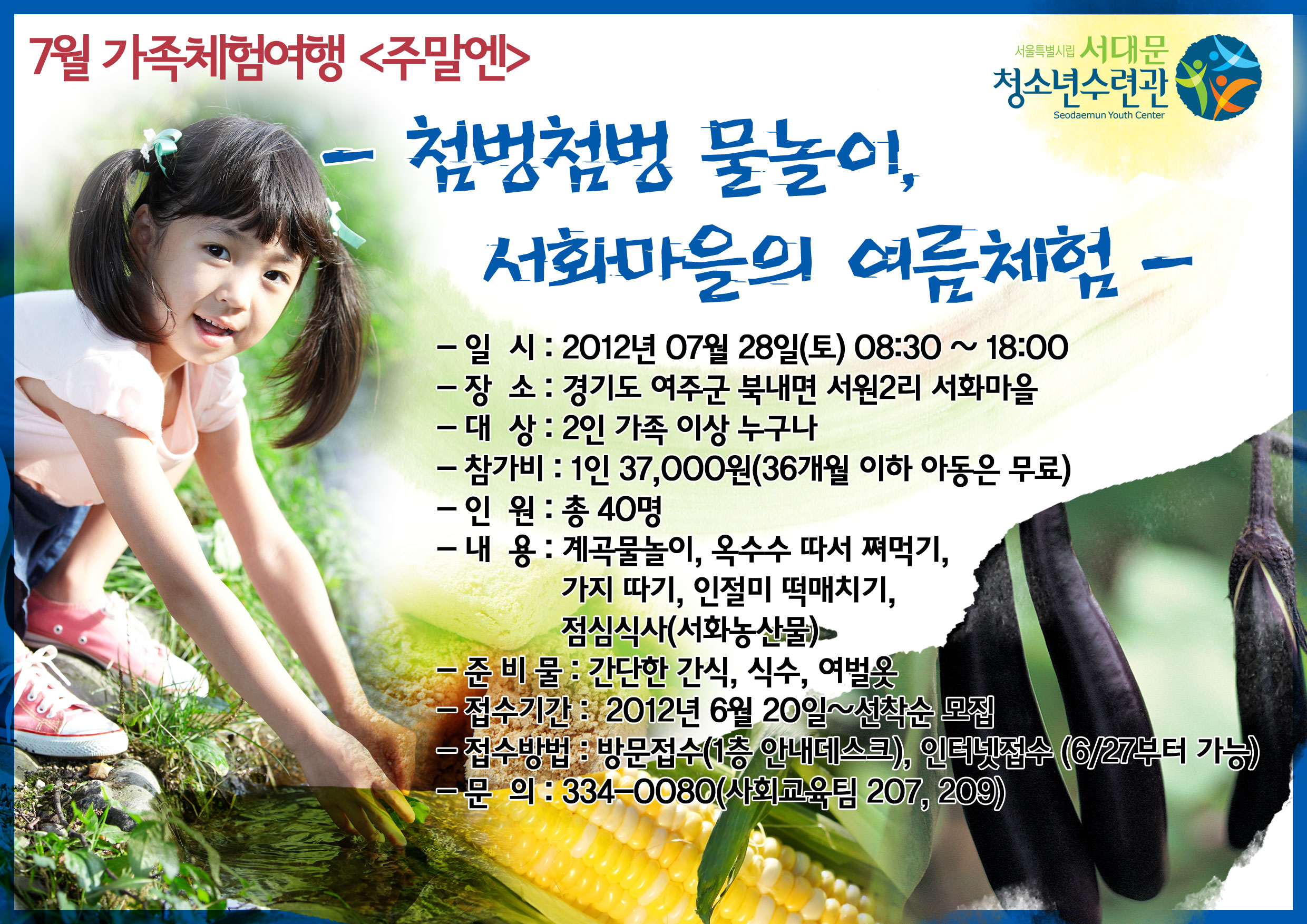 | 제목 | 7월 주말가족체험[주말엔]첨벙첨벙 물놀이 서화마을의 여름체험 | |||