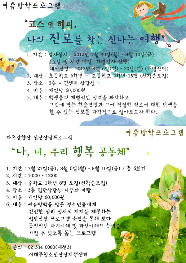 | 제목 | \"자존감향상집단상담프로그램&나의 진로를 찾는 신나는 여행!\"-여름방학프로그램 | |||