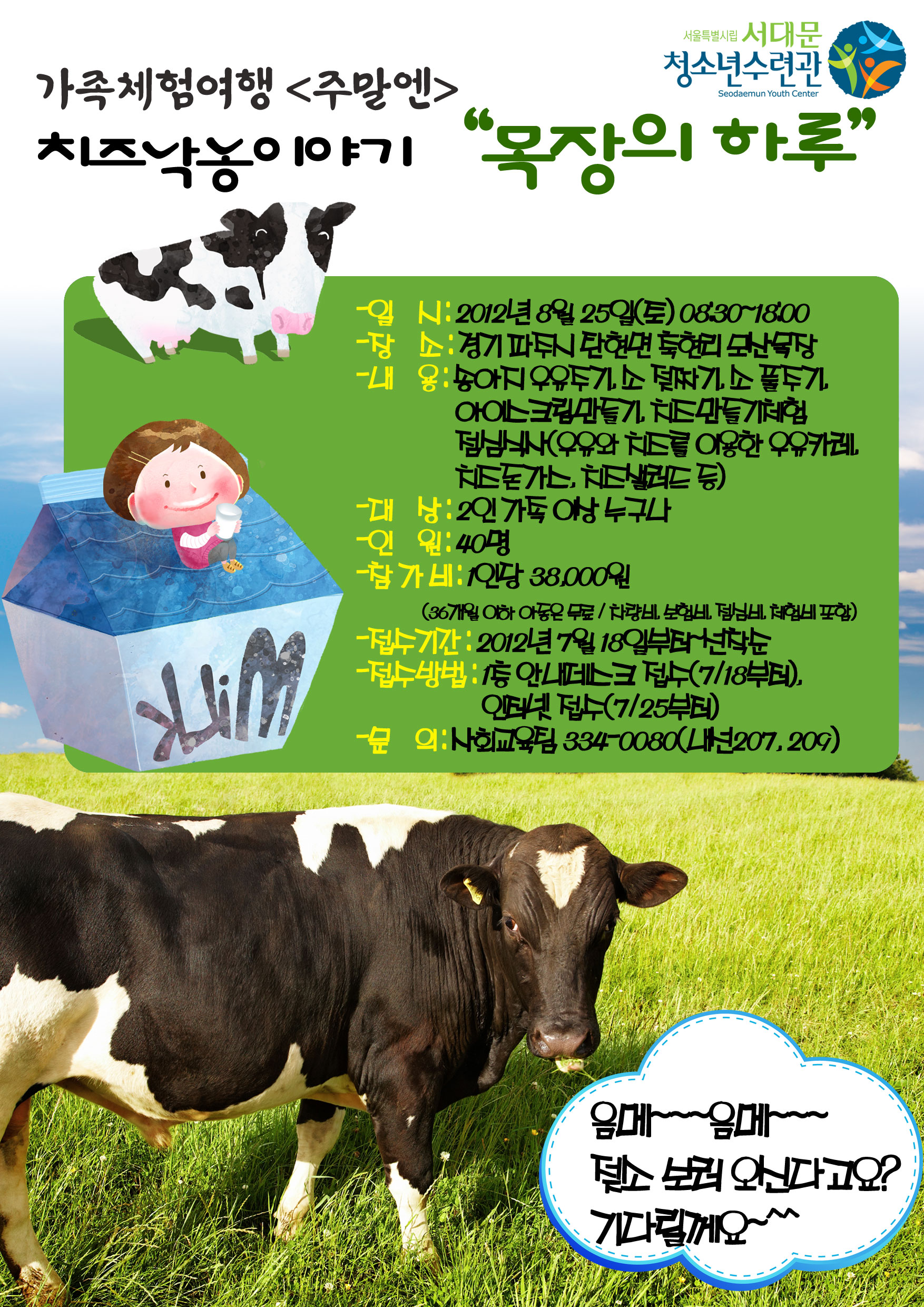 | 제목 | 8월 주말가족체험[주말엔]치즈낙농이야기“목장의 하루” | |||