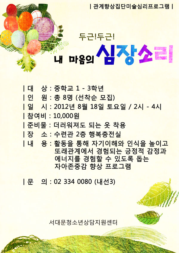 | 제목 | \'내 마음의 심장소리\' 자아성장을 위한 집단미술심리프로그램 | |||