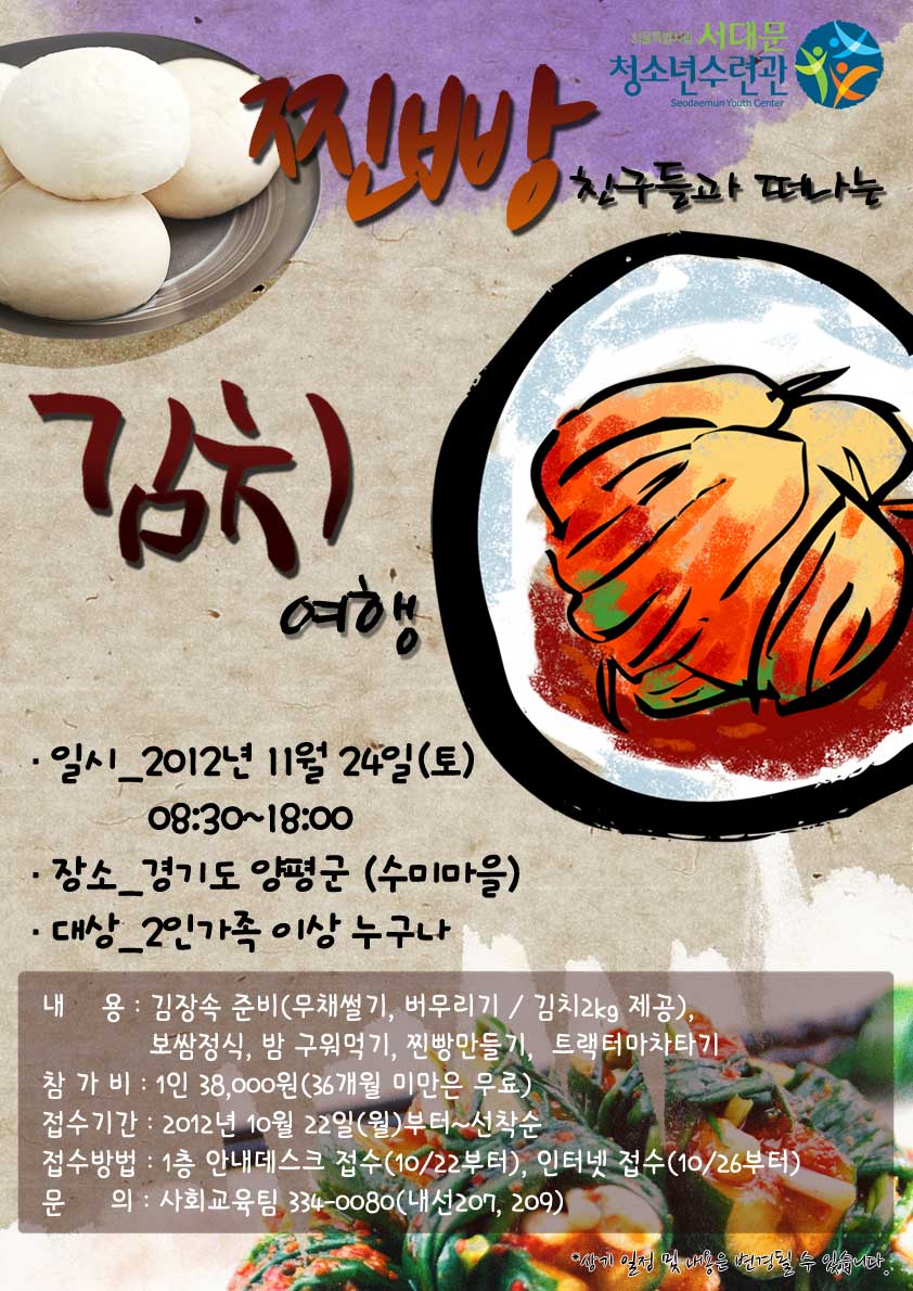 | 제목 | 11월 <주말엔>찐빵친구들과 떠나는 김치여행 | |||