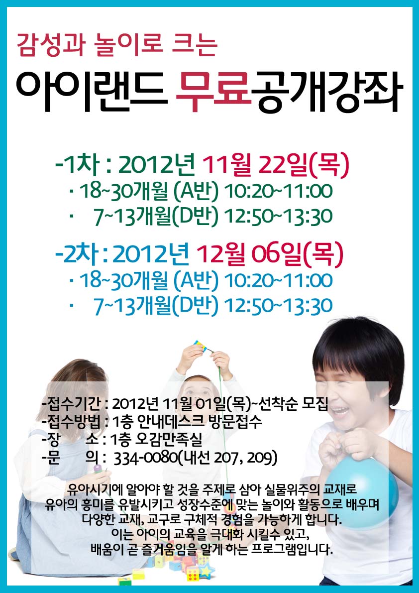 | 제목 | **엄마랑 아가랑 무료특강) 감성과 놀이로 크는 아이랜드 | |||