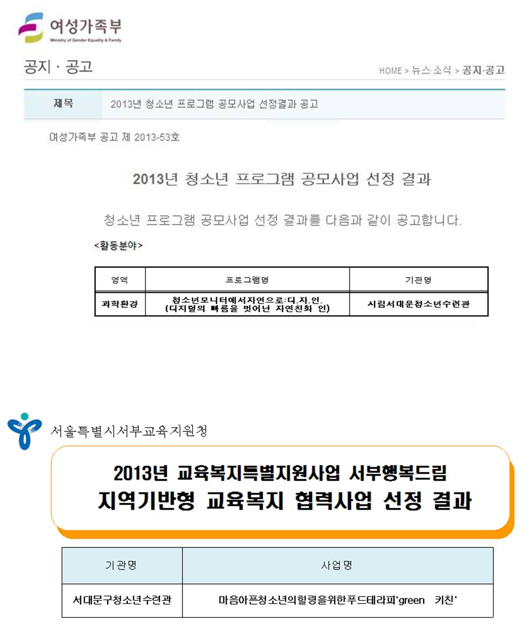 | 제목 | 서대문청소년수련관 공모사업 선정 | |||