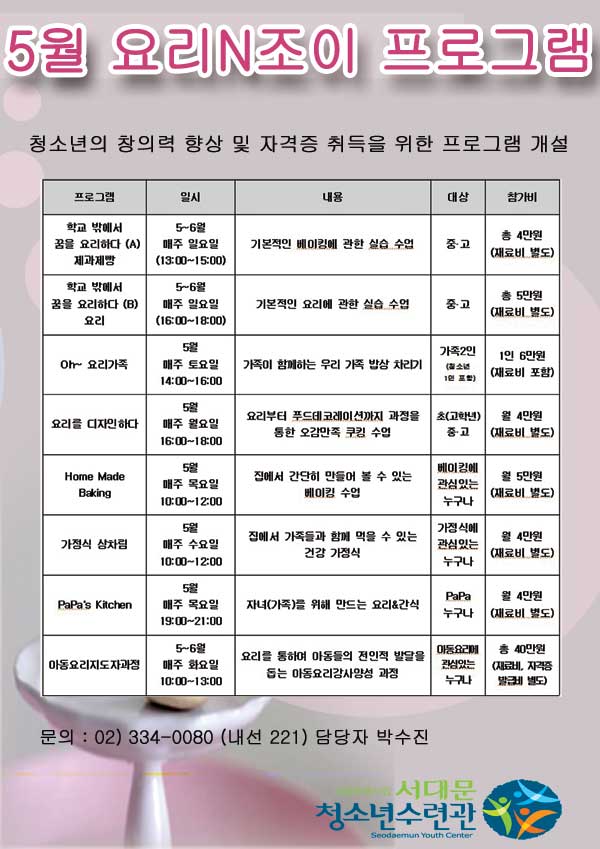 | 제목 | 요리N조이 5월 프로그램 | |||