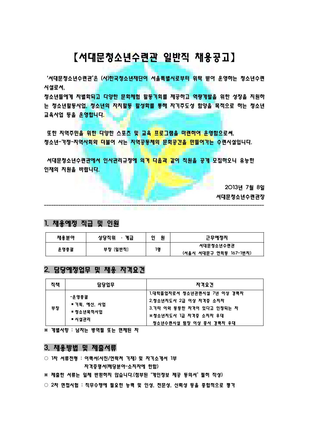 | 제목 | 서대문청소년수련관 운영부장 채용공고 | |||