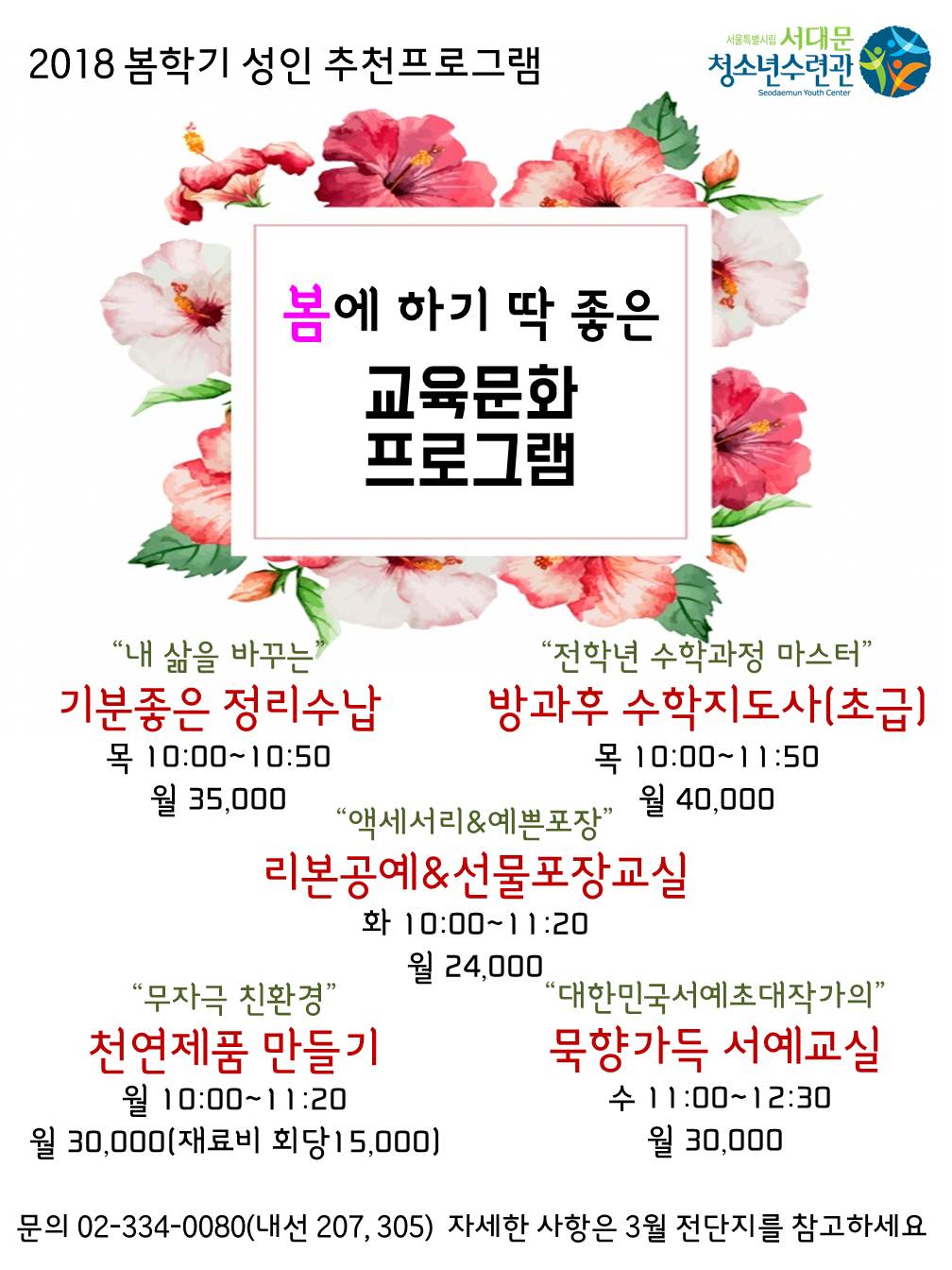 | 제목 | [교육문화] 2018 봄학기 신규/추천 프로그램 | |||