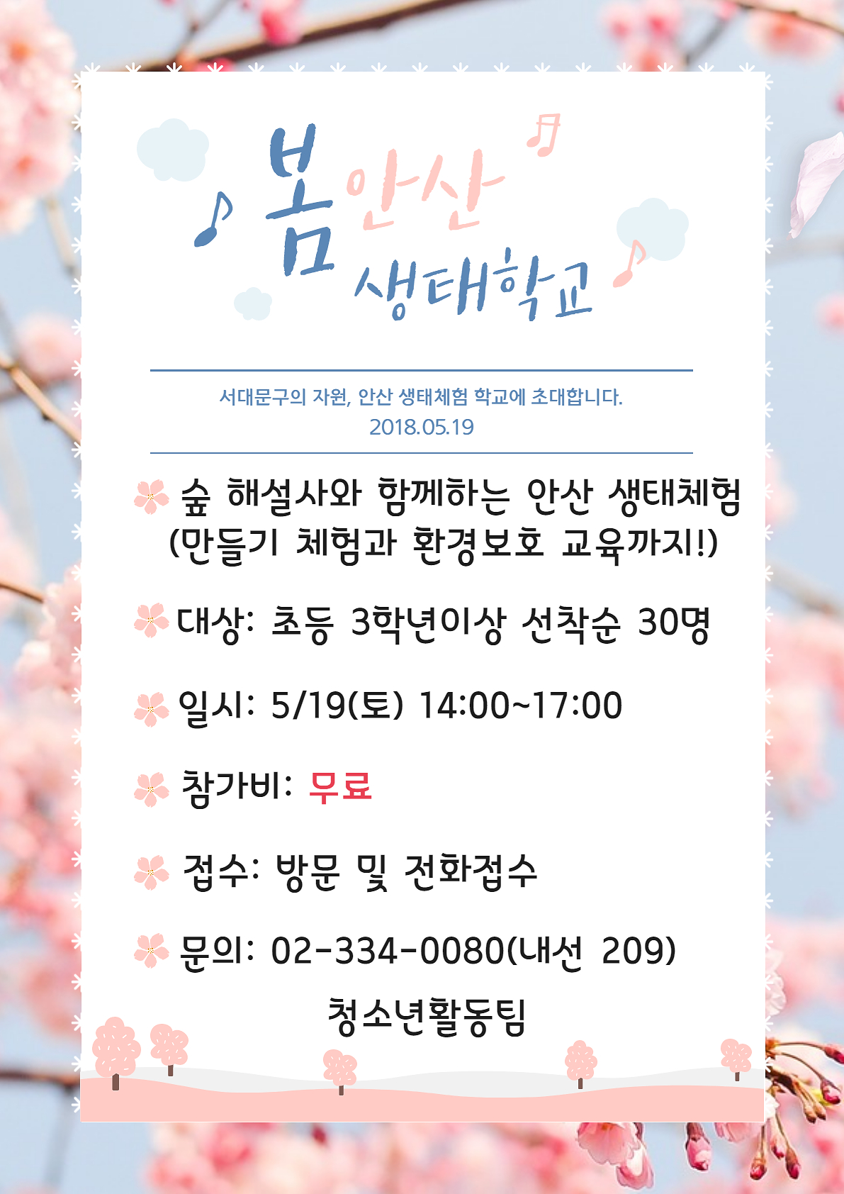 | 제목 | [청소년활동]안산 생태학교 참가자 모집 | |||
